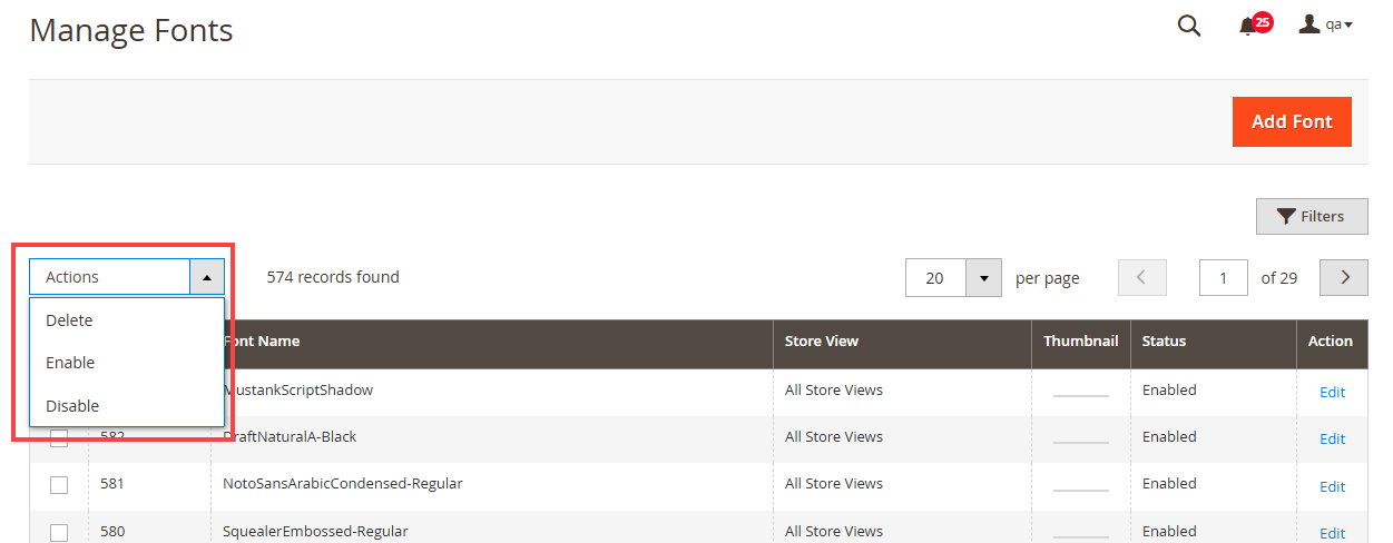 Similarly, you can change the font status to Enable / Disable from the ‘Actions’ dropdown list. [4]