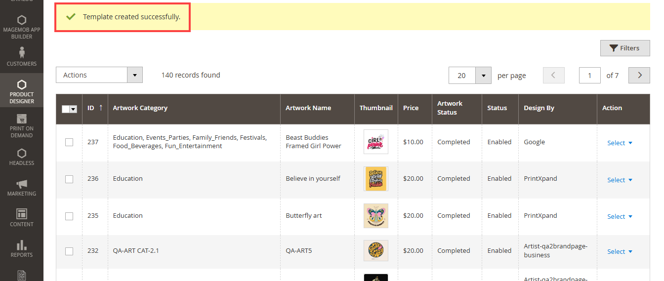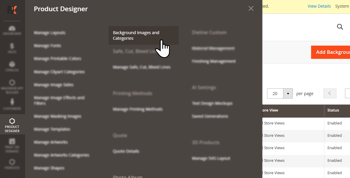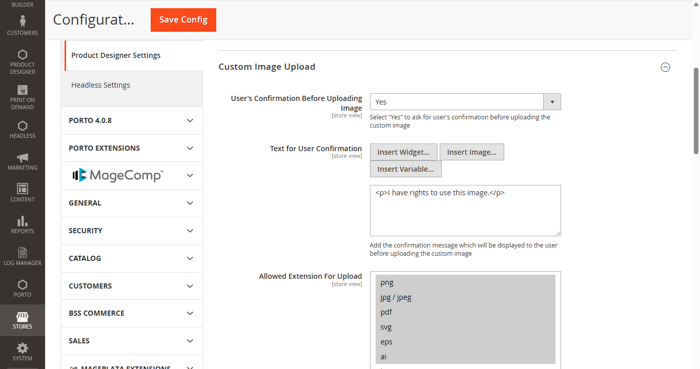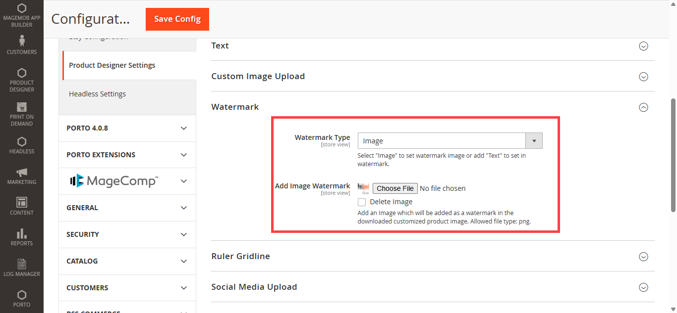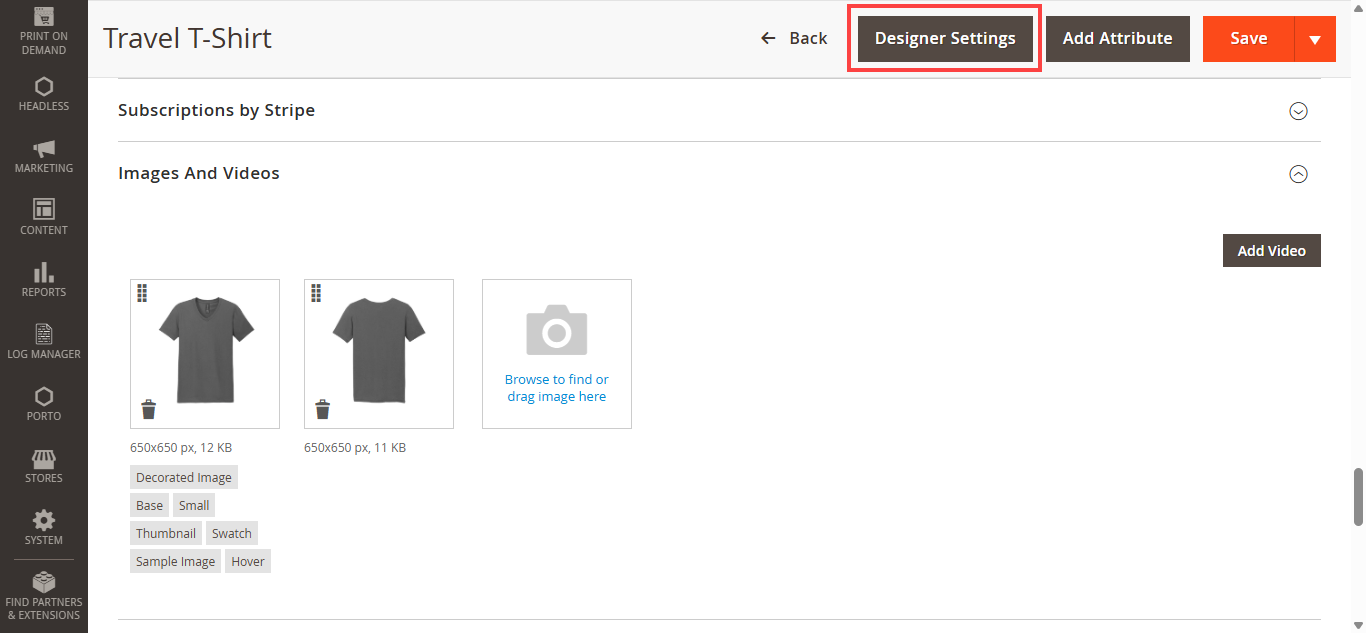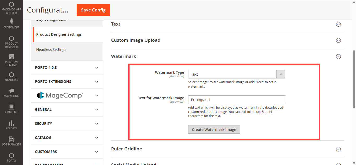 Step 5: After the successful installation, you can see the ‘Product Designer Settings’ under PrintXpand tab inside STORES->Configuration.