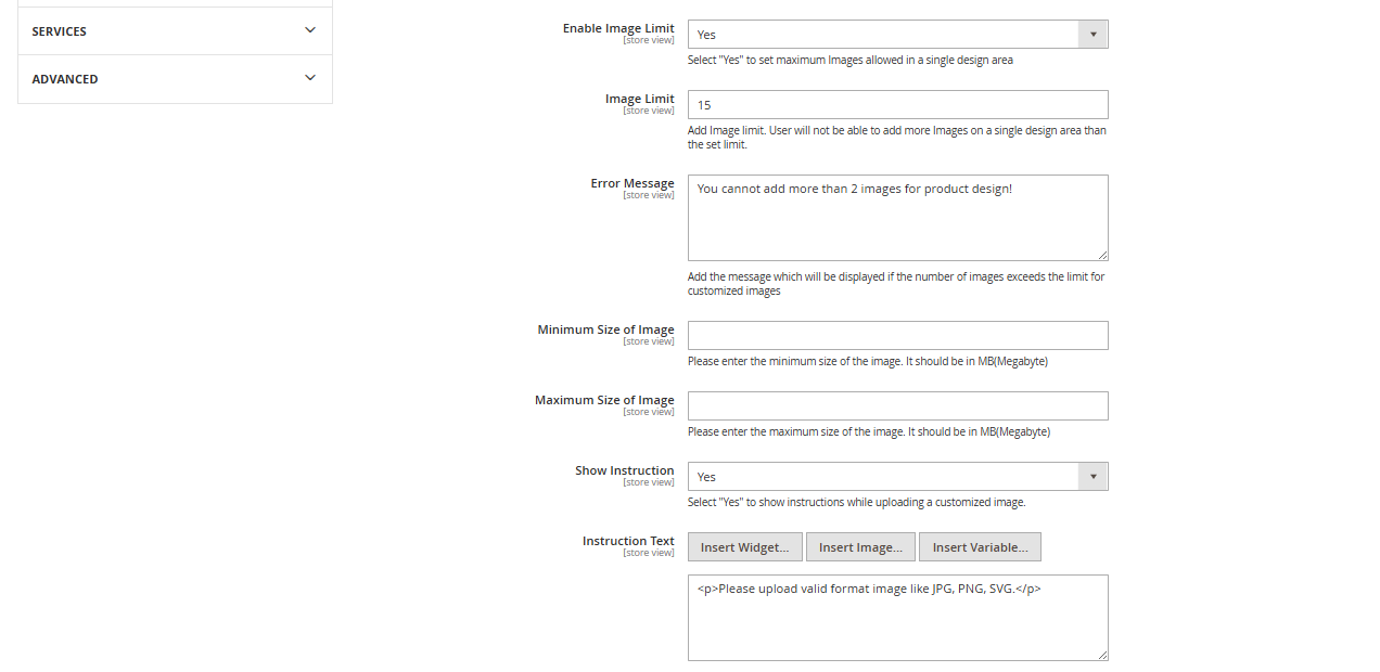 -Enable Text-Object Limit: If you select Yes, you can set a limit of the Text Object for your customers so they cannot cross the limit on the single design area.