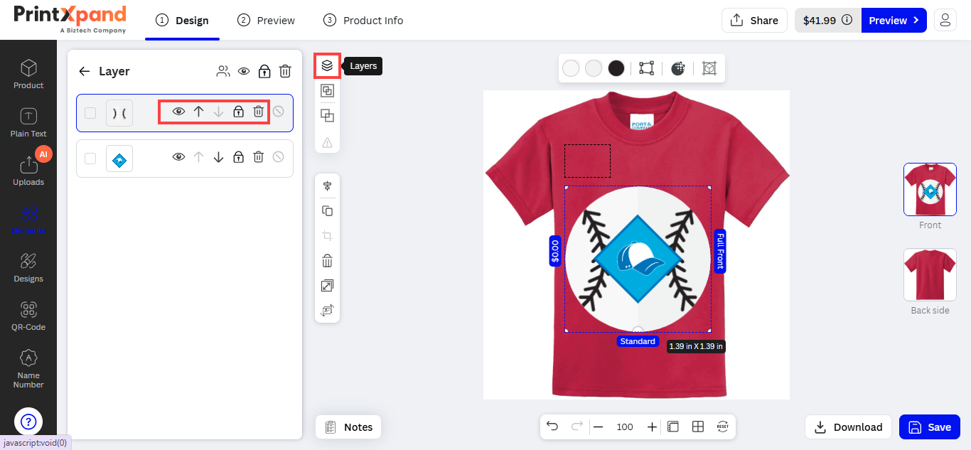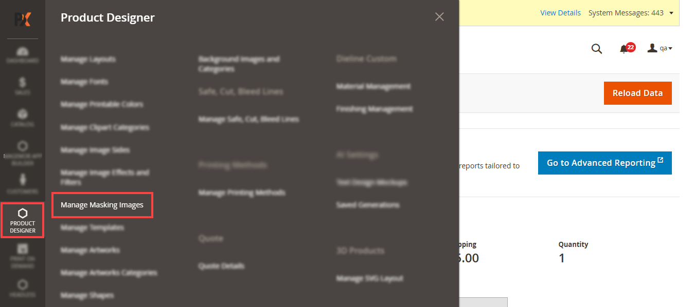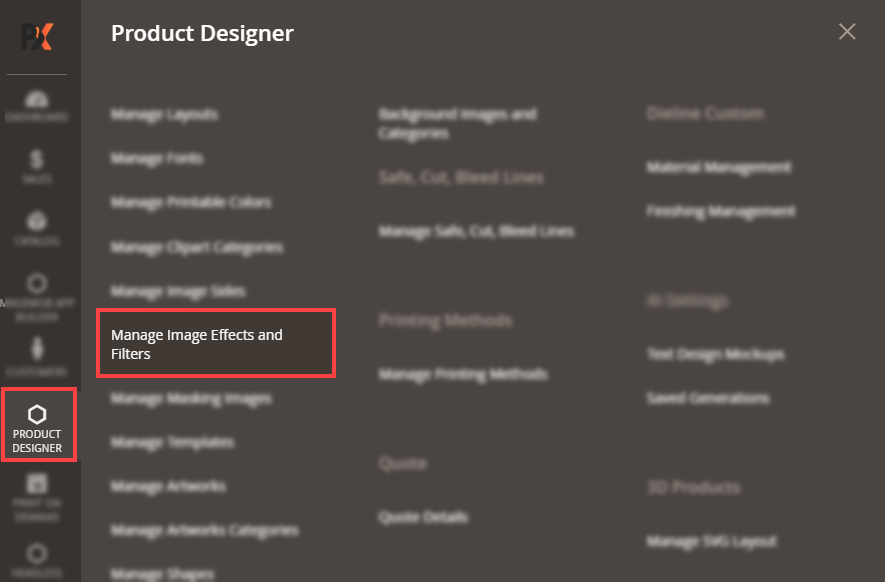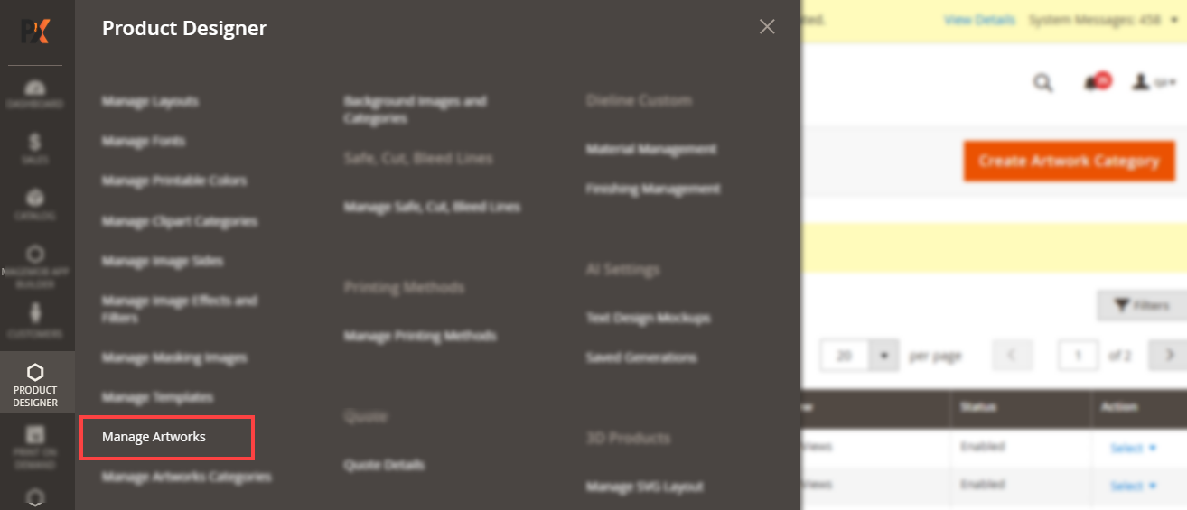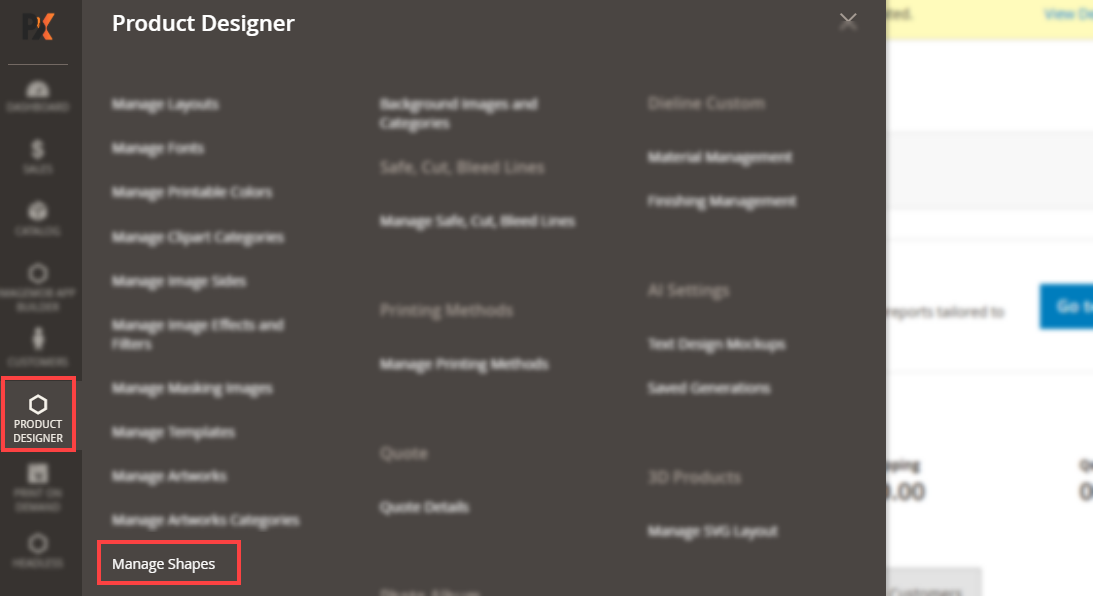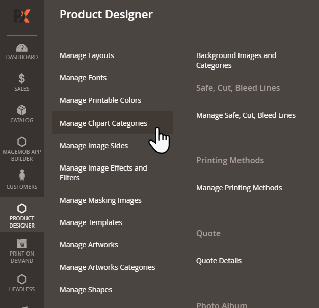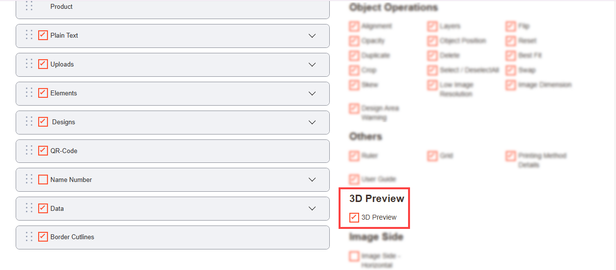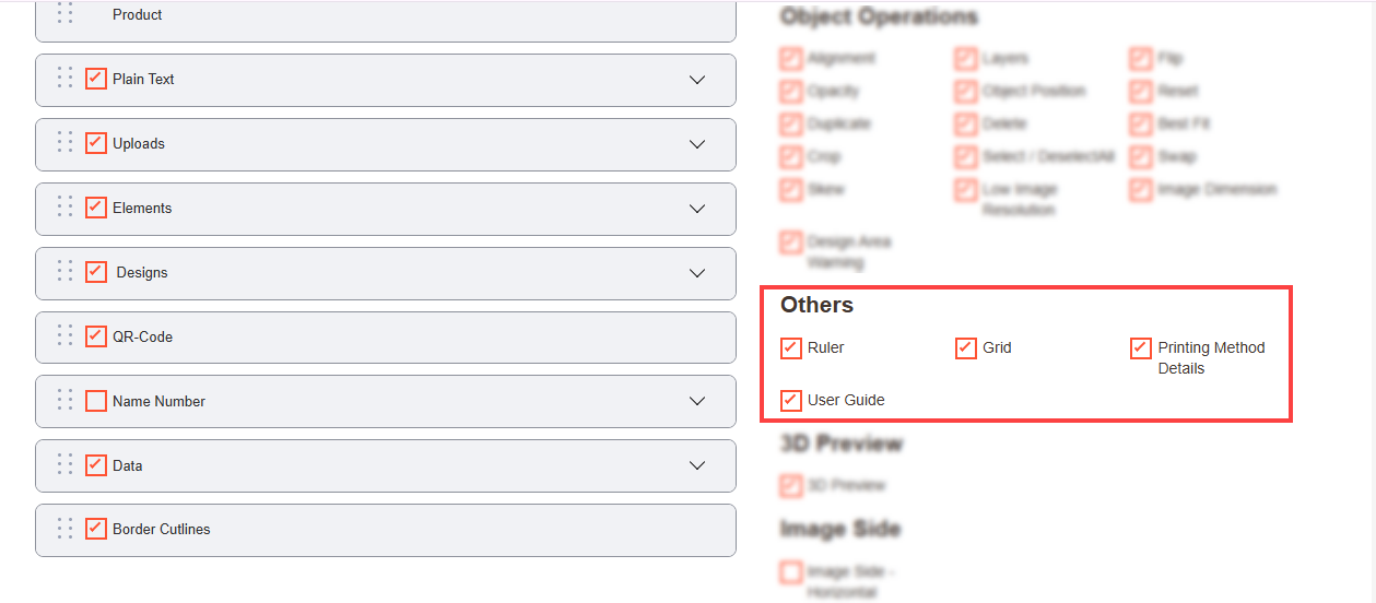 Navigate to the Product Designer > Manage Layouts to manage the Designer Tabs and enable the required features for the designing tool.[1]