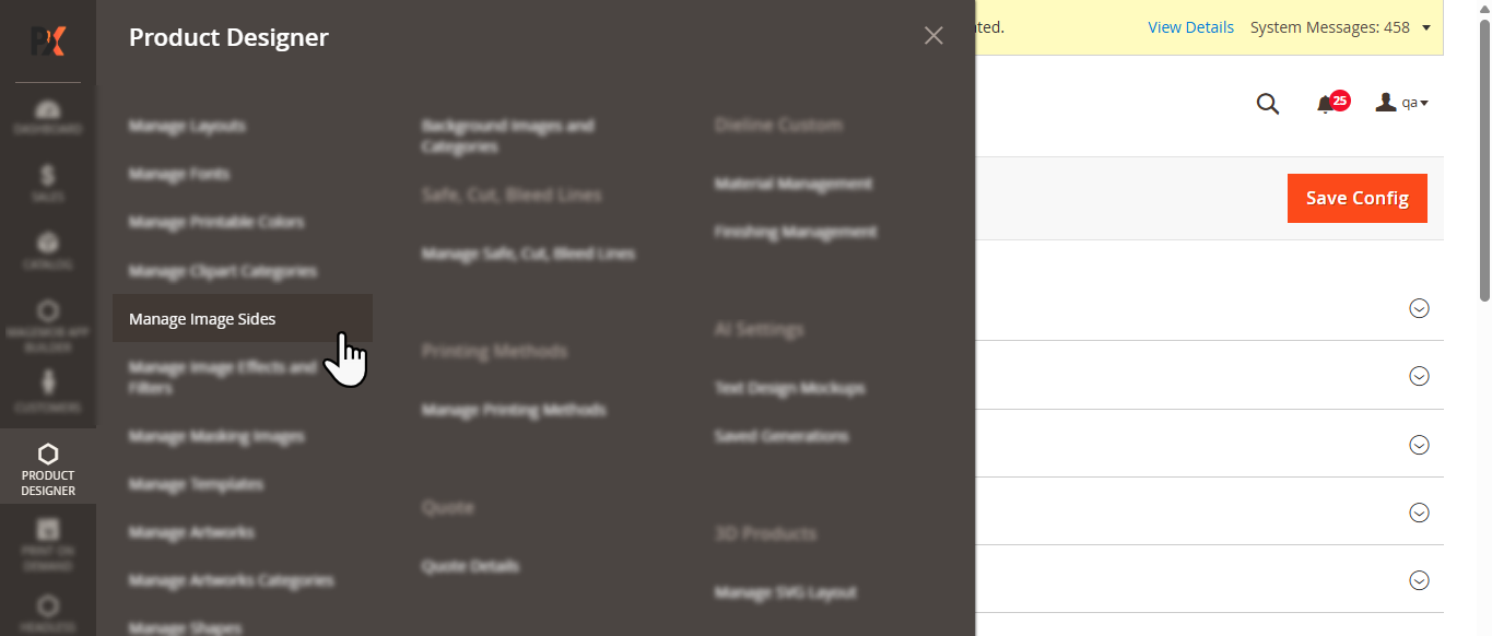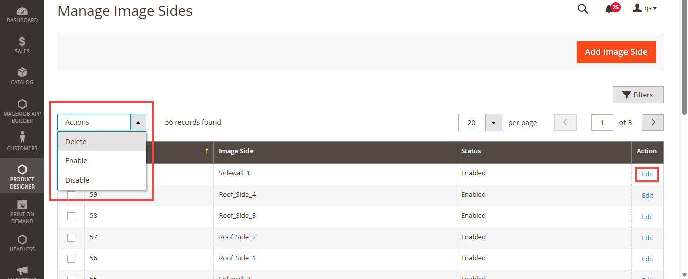 2. For Product Info Page Images Tab (To add “Image Sides” and “Edit Design Area” columns in media grid):