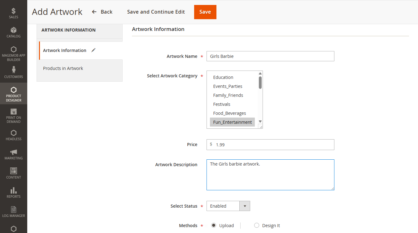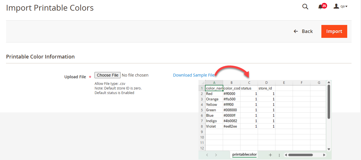 By doing so, a sample file will be downloaded to your system. In the file, you can see all the products with the design area details (if added) you can add the design area details of other products. [3]