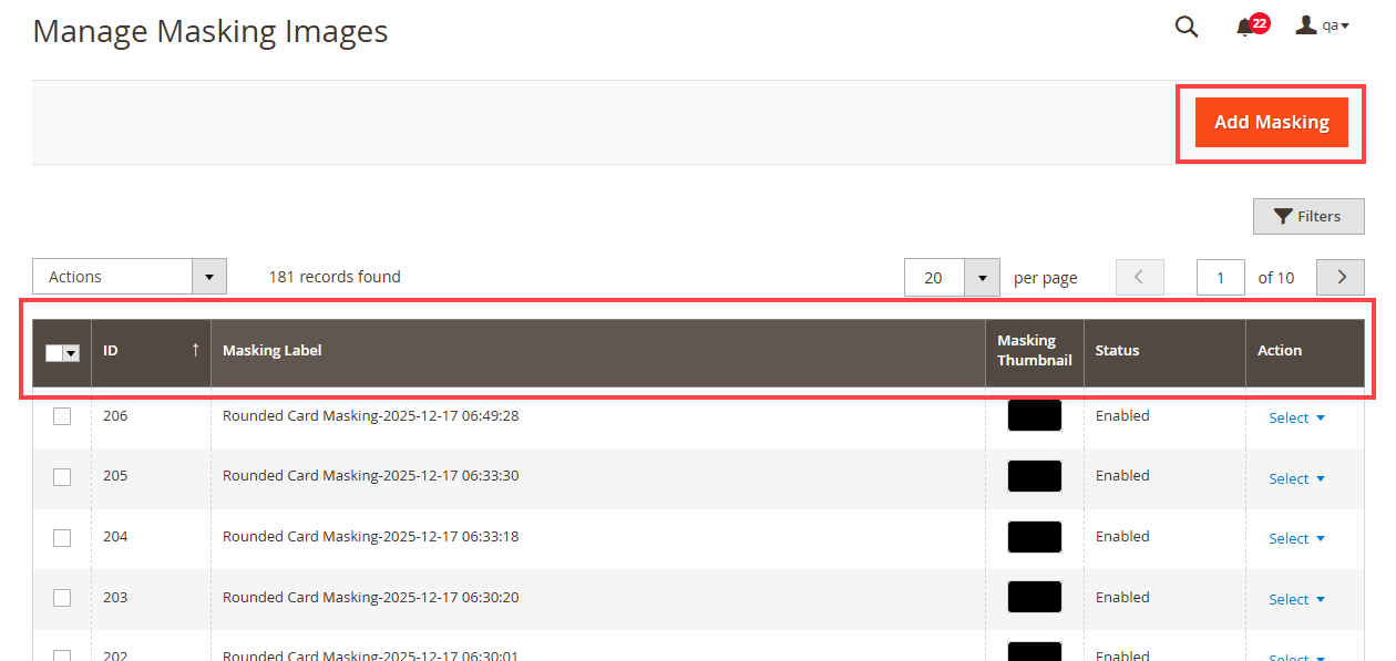 You will navigate to the listing page of the Fonts. You will see the Font details like Id, Font Label, Font Image (if available), Status, and Actions. [3]