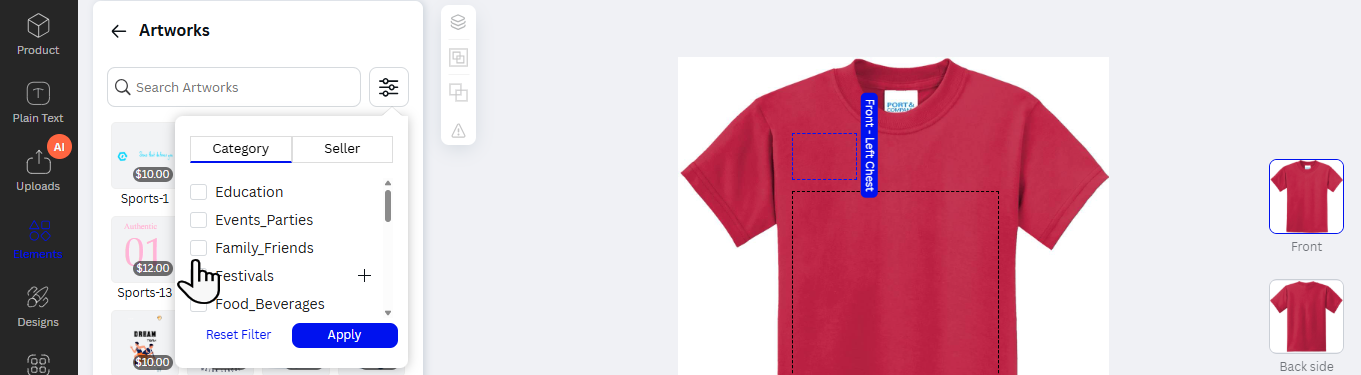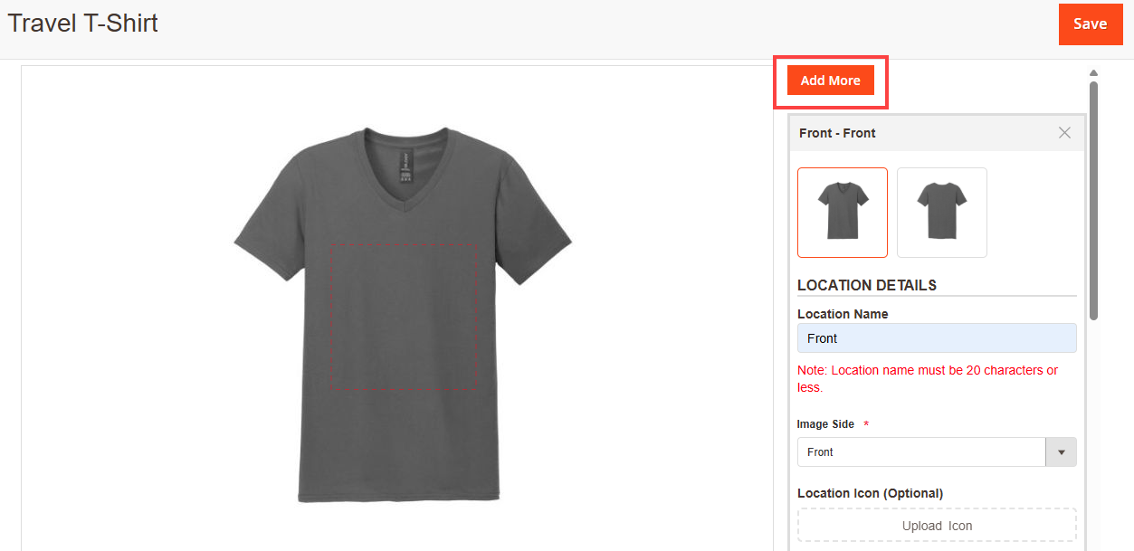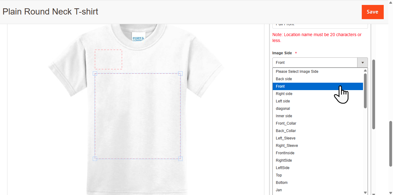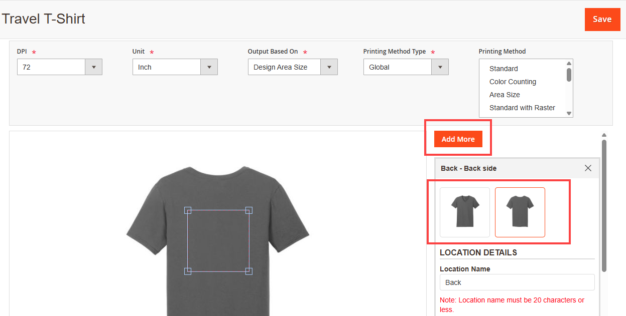 Note: You can add multiple design areas for a single side.