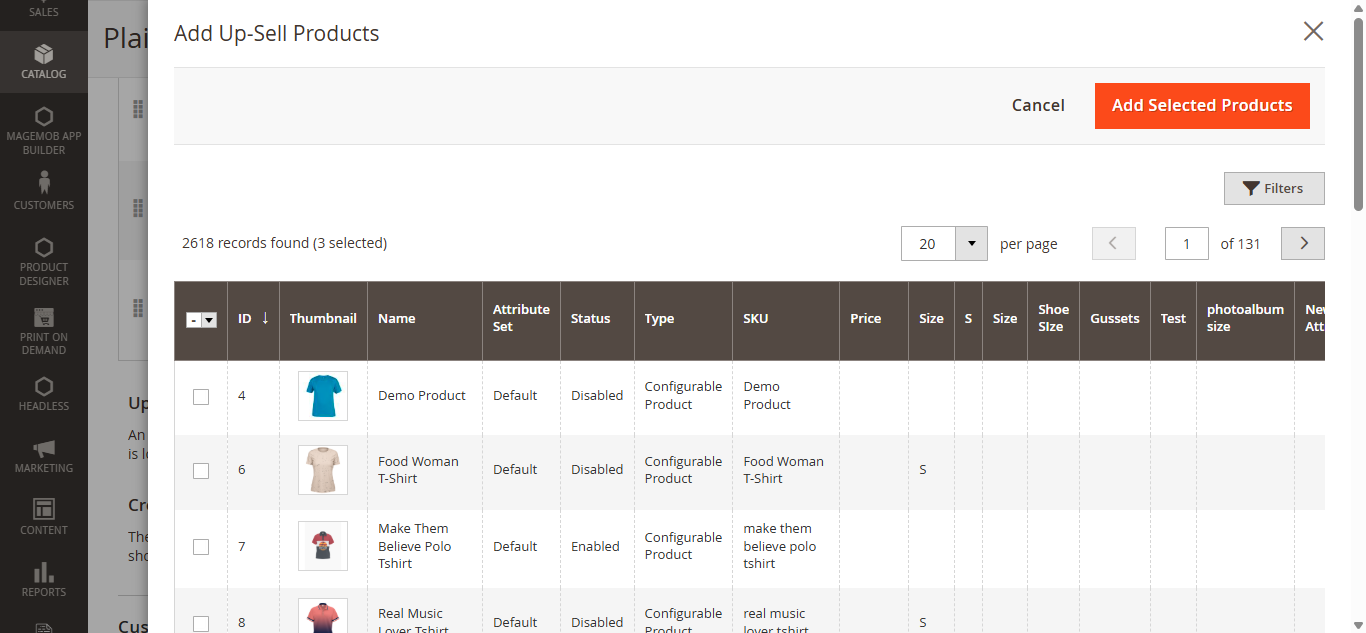 To add an up-selling product click on Add Up-Sell Products you will be seeing a list of products among which you could choose to display as up-sell products. [5]