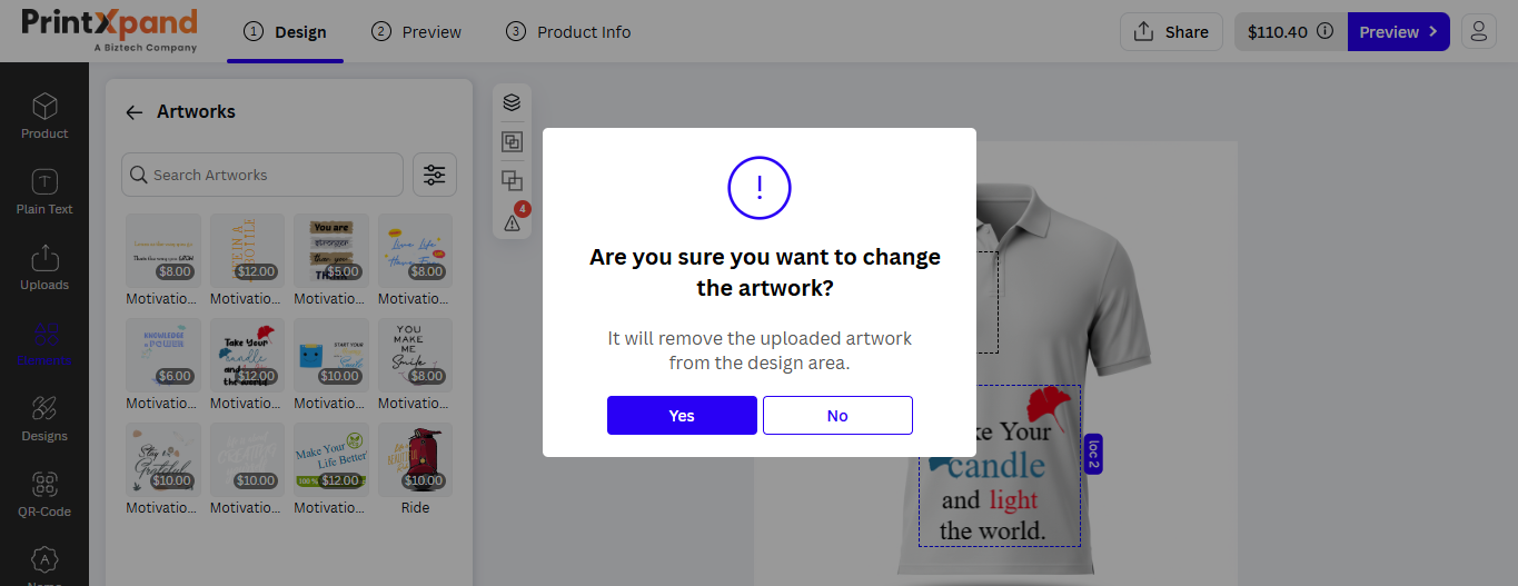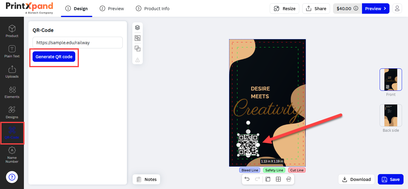 Note: You can apply one QR code per design area.