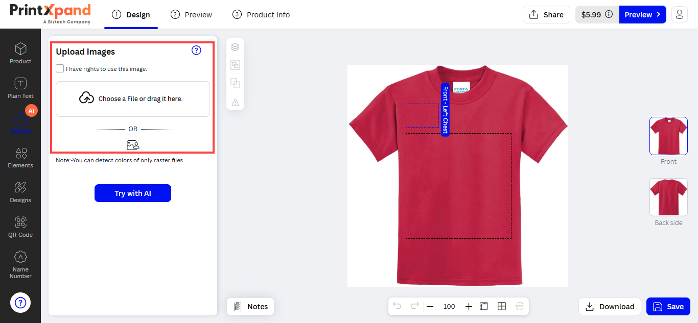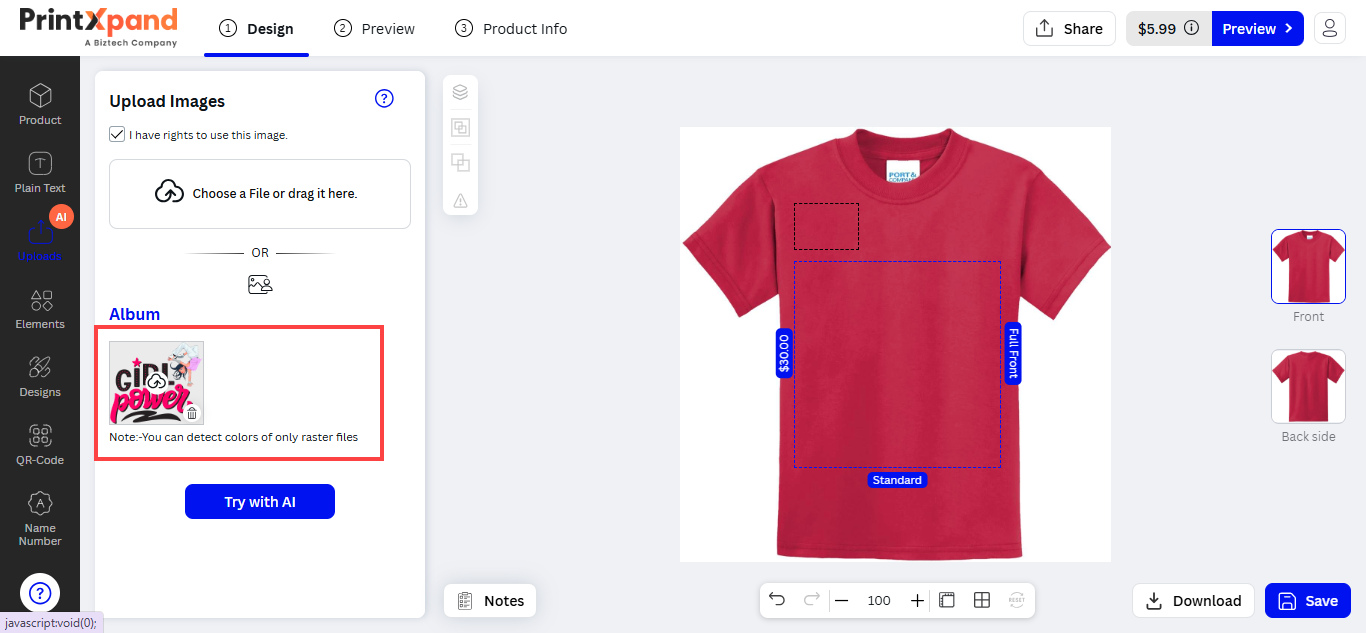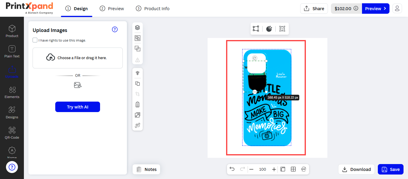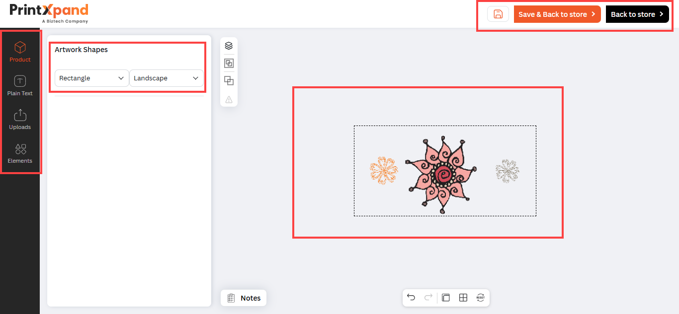 Products are provided with a specific area so that your customers can design the product with their creativity. This area is known as the Product Design Area .