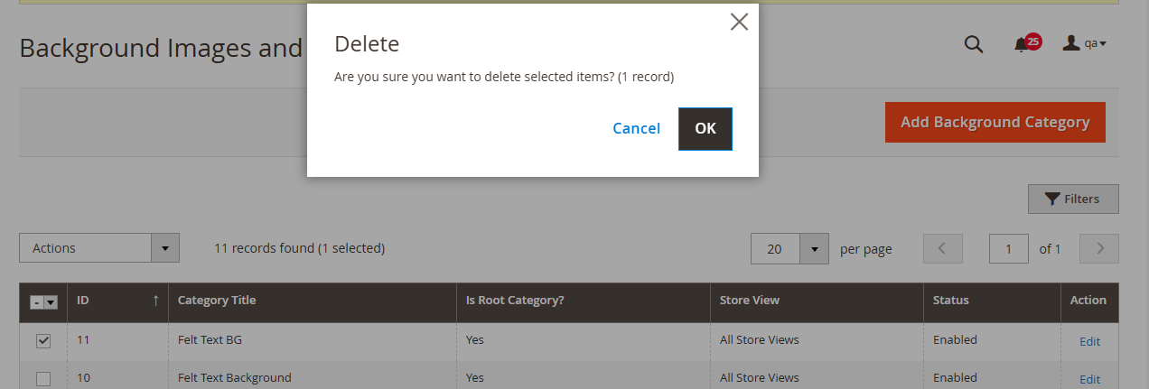 If you want to ‘Delete’ any Font, select the Font and click on the ‘Delete’ option from the ‘Actions’ dropdown list. A confirmation pop-up will appear after you click on the ‘Delete’ option. Select “OK” to perform the delete action.
