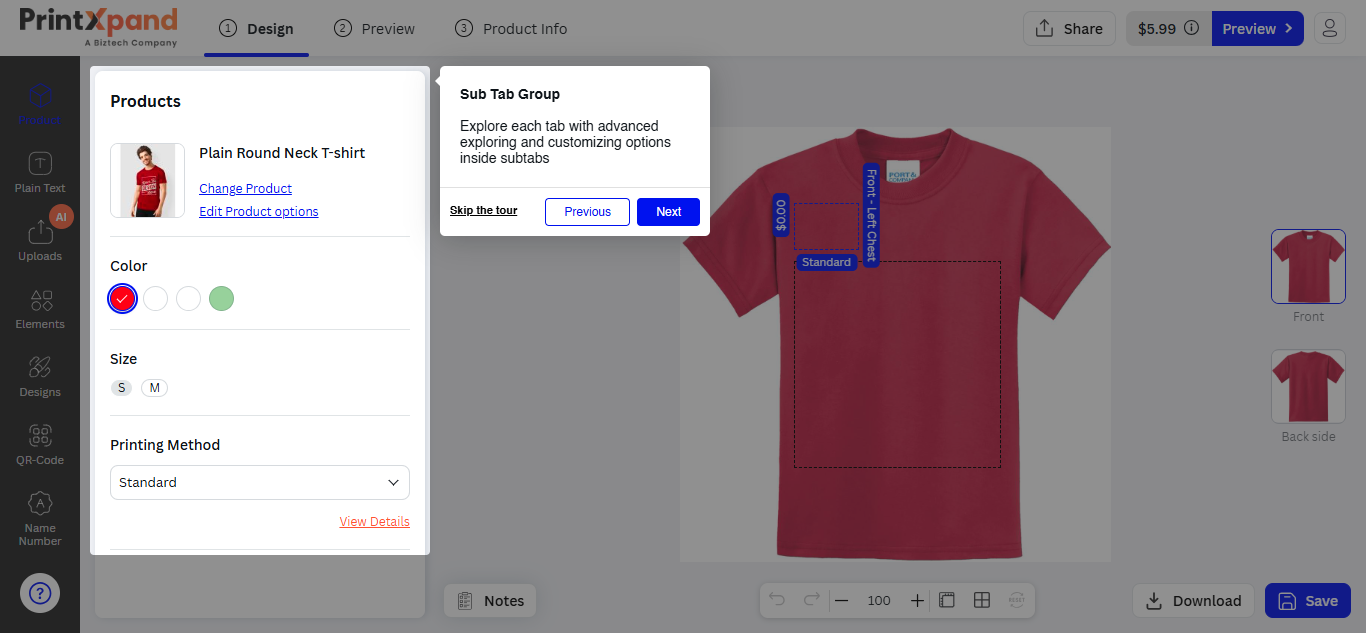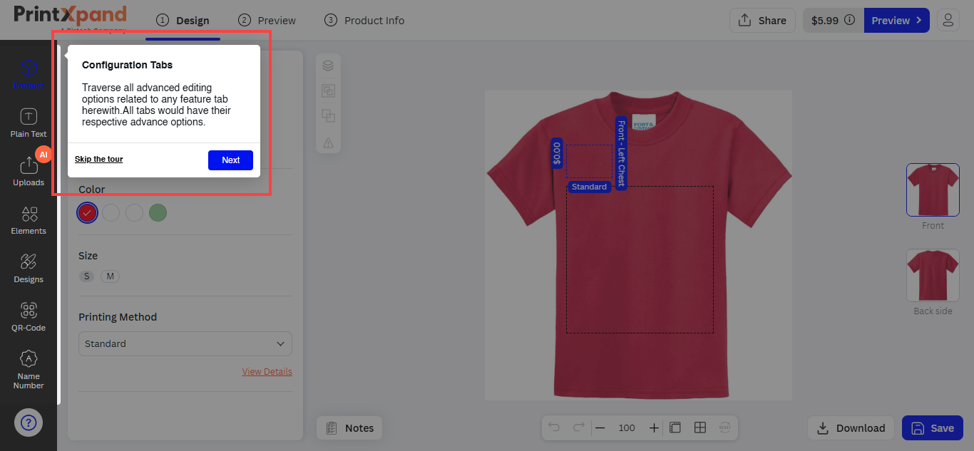 You can instruct and provide the user guide to the customers who are new to the PrintXpand tool from the “User Interactive Tour”.