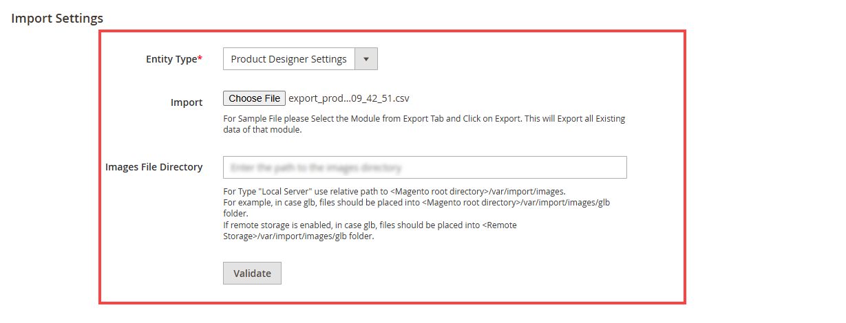 Then in the Import section, you have to insert the file that you want to import. After uploading the file enter the Images File Directory path to upload the images.