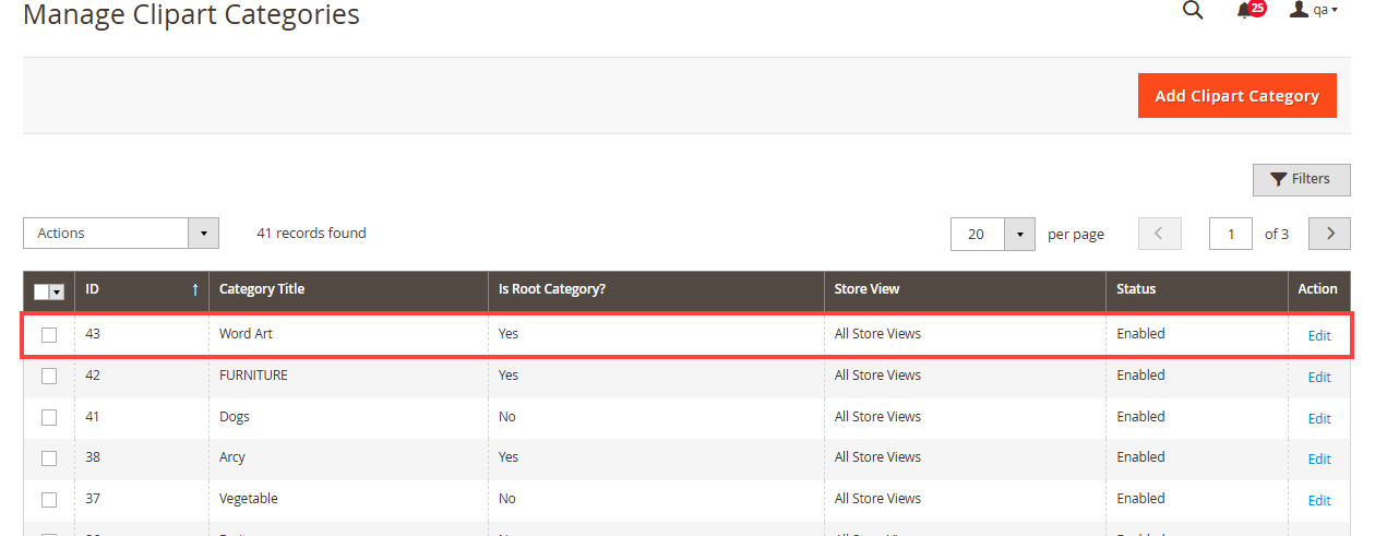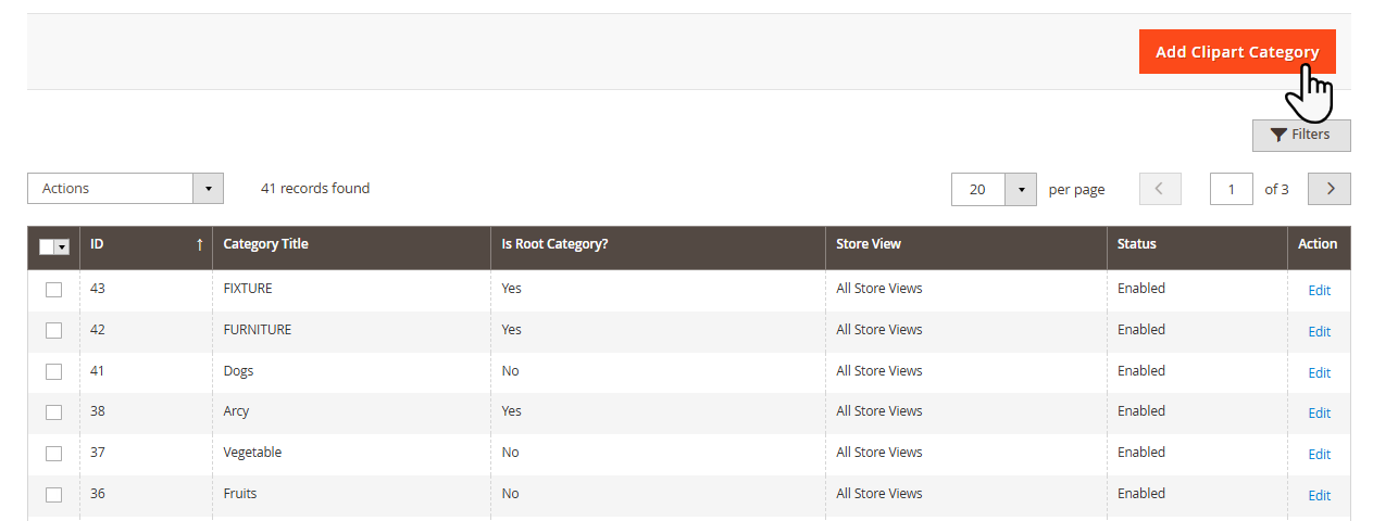 Being an admin, you can edit the layout and manage the Tabs, Sub-tabs, features for the storefront by clicking on the ‘edit’ icon of any layout.