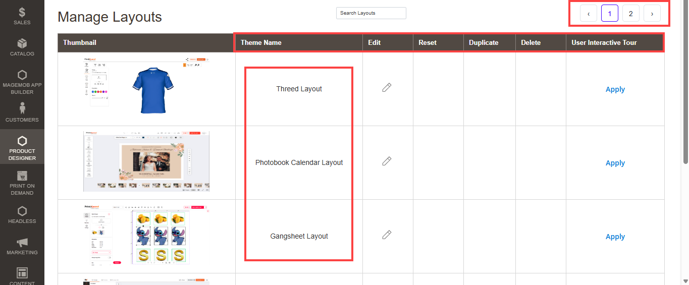 You can enable the Ruler & Gridline feature by navigating to PRODUCT DESIGNER → Manage Layout, you will get the list of created layouts. [1]