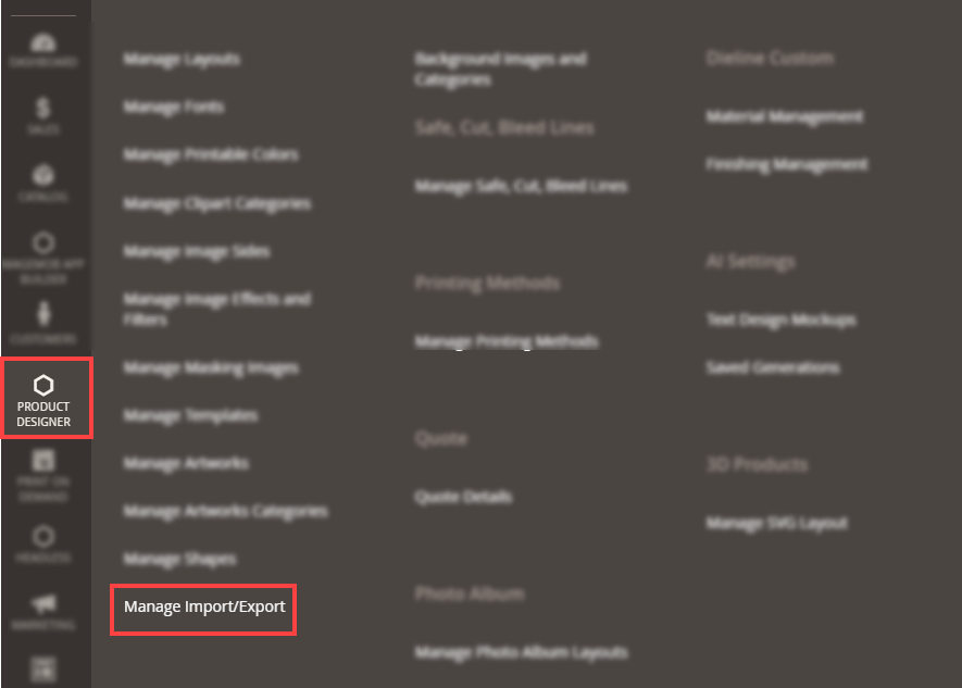 Navigate to Product Designer -> Manage Import/Export. [1]