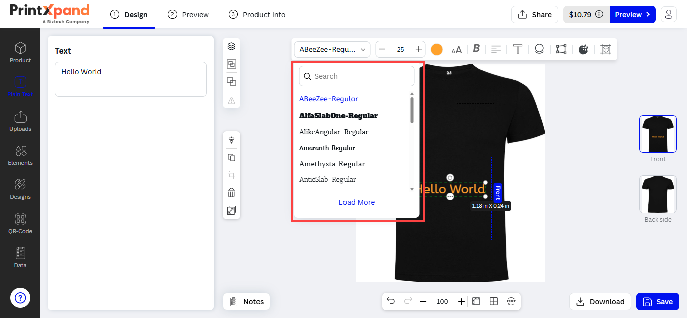 Note: PrintXpand4.0 Designer Tool provides 300+ preloaded Font effects. If you want to add and manage your custom fonts, you need to purchase our Font Manage-Addon. [9]